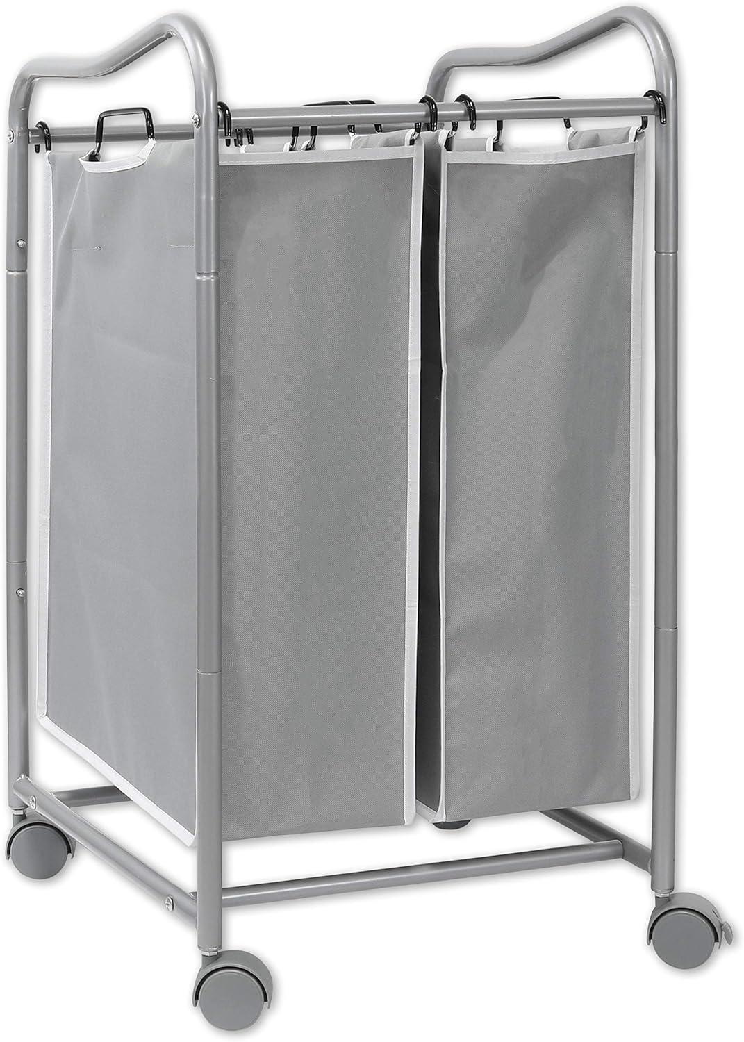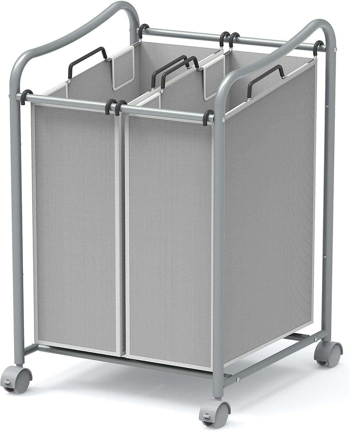 Simple Houseware 2-Bag Heavy Duty Rolling Laundry Sorter Cart, Silver
